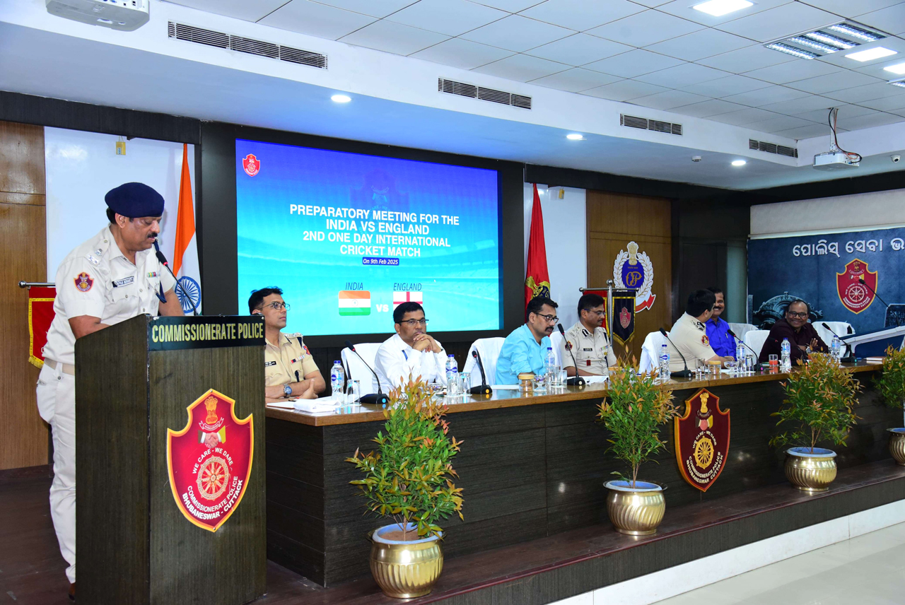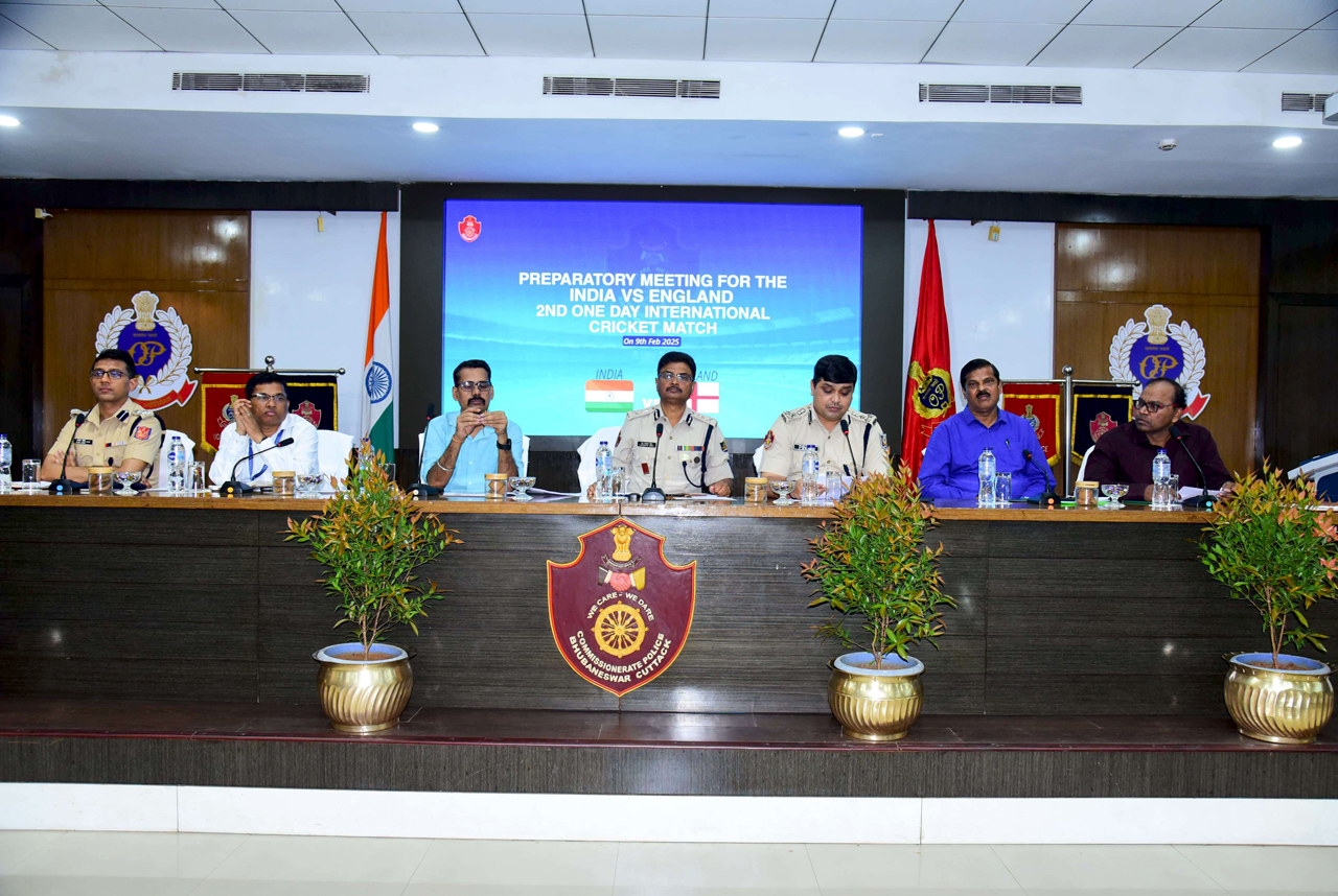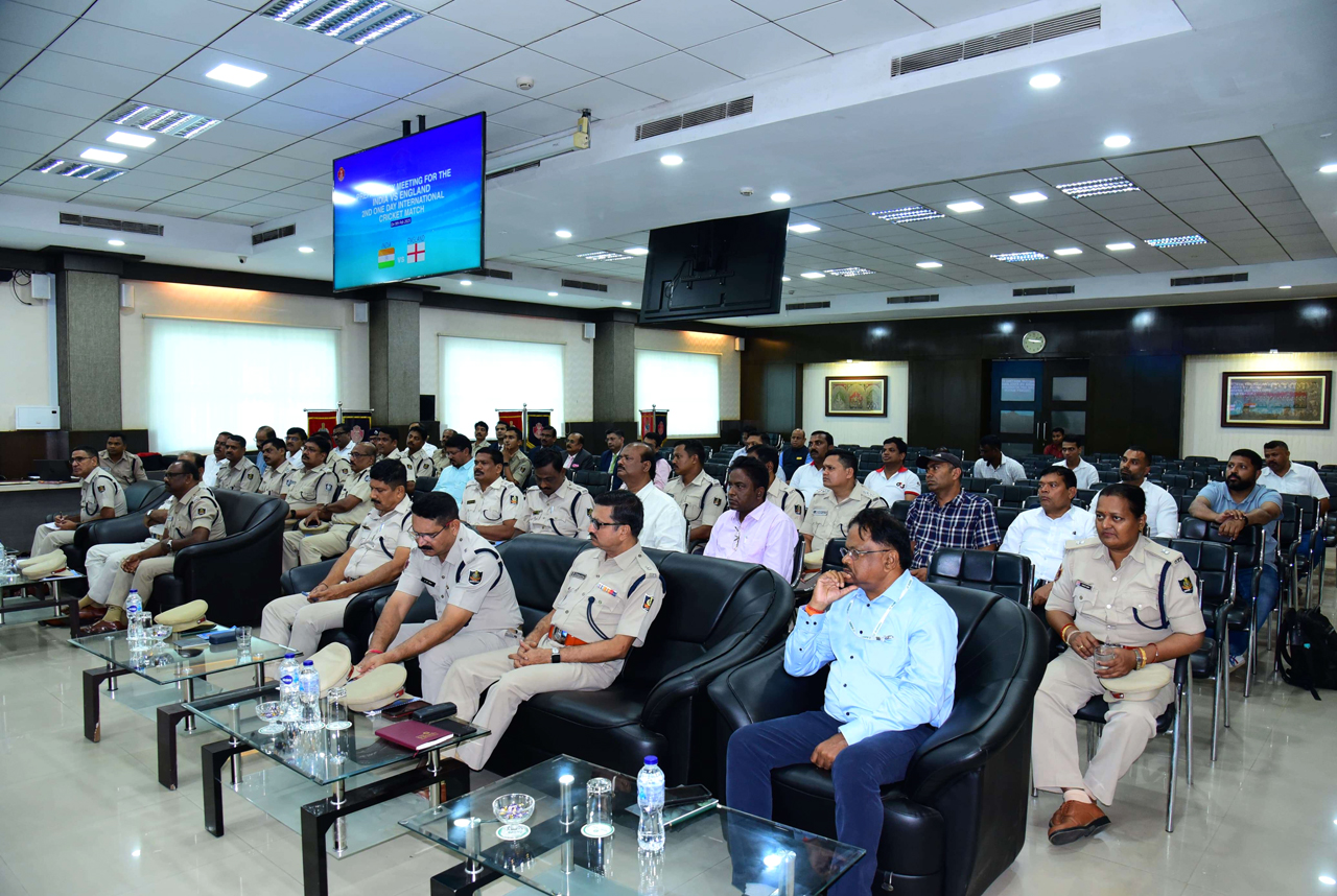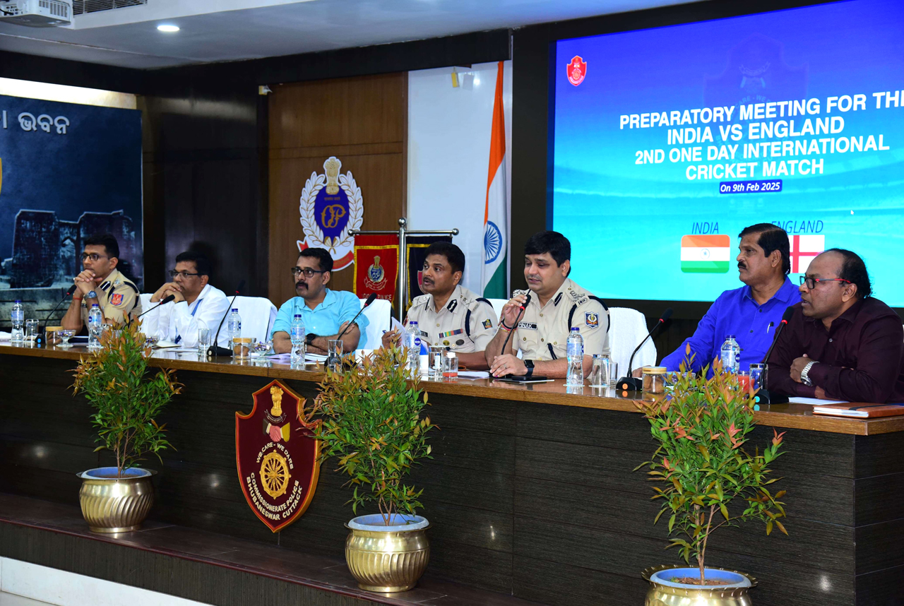 A preparatory meeting for the India vs England 2nd One-Day International Cricket match at Barabati Stadium, Cuttack scheduled for 9th February 2025, was held on 05.02.2025 at the Police Seva Bhawan, Bhubaneswar. Police Commissioner Dr. S. Dev Datta Singh, Addl. CP Dr. Umashankar Dash, DCP BBSR Sri Pinak Mishra, Director Airport, DIG CISF, CEO, OCA office bearers, MD, Sanjeev Pattanik, Hotel Mayfair Lagoon and Pvt. Security agencies were also present. Discussions focused on security, transportation, crowd management, hospitality, infrastructure readiness, and branding opportunities to ensure a spectacular event.