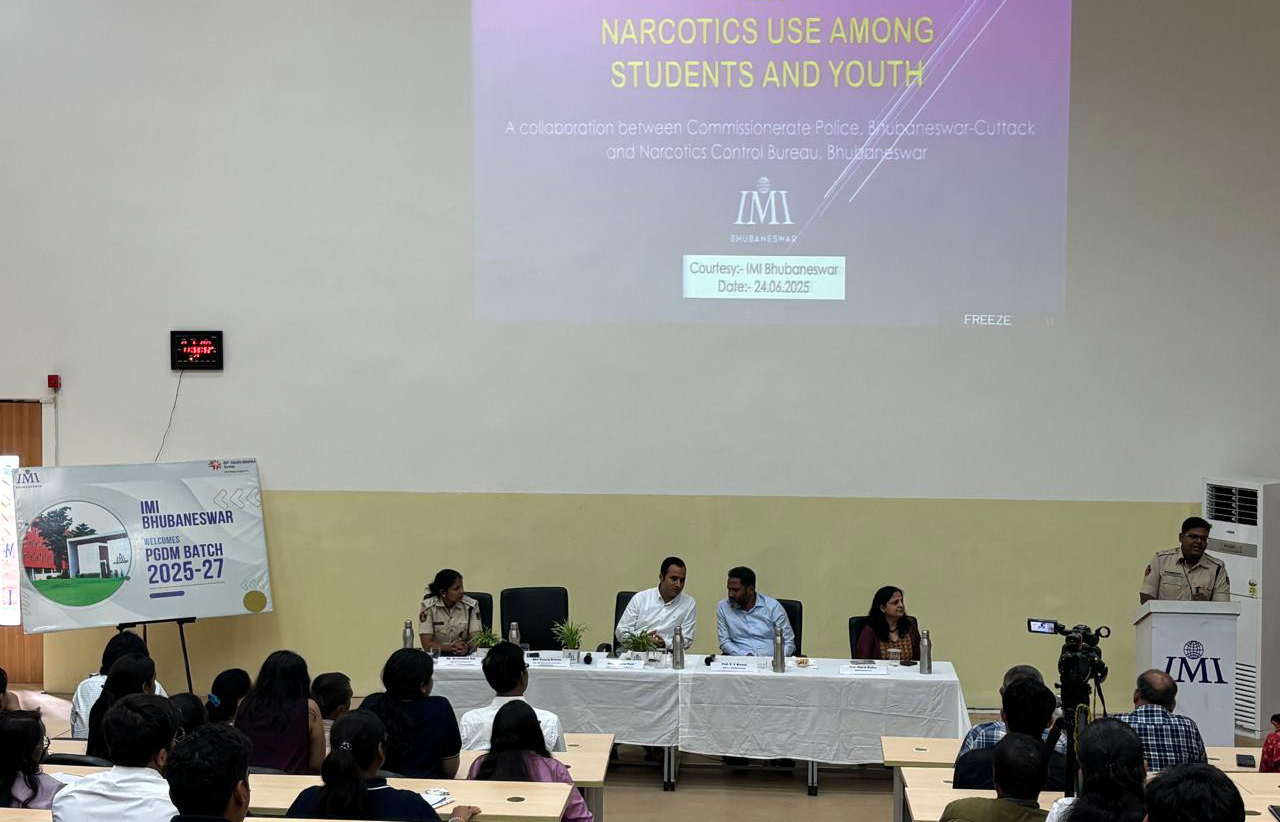 Commissionerate Police Bhubaneswar-Cuttack collaborates with the Narcotics Control Bureau, Bhubaneswar, in organizing a sensitization program on narcotics use among students and youth on 24.06.2025 at the International Management Institute (IMI). Through this program, we urge the youth of Odisha to be aware of the consequences of drug abuse and lead a life free of addiction. The interactive session was led by Shri Samiran Paul, Superintendent, NCB,BBSR and Shri Swaraj Debata, Addl. DCP, Special Crime Unit, Police Commissionerate who highlighted the need for drug free campuses.