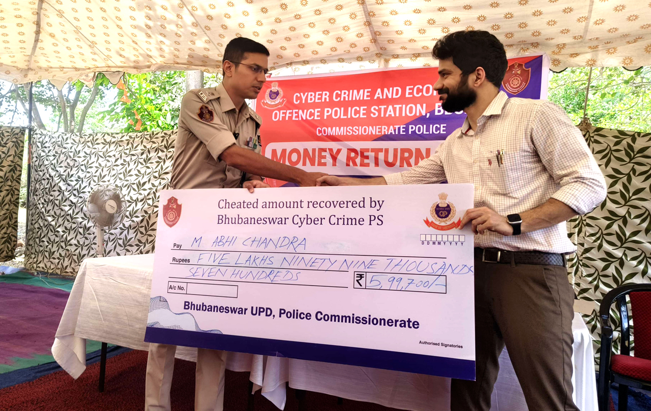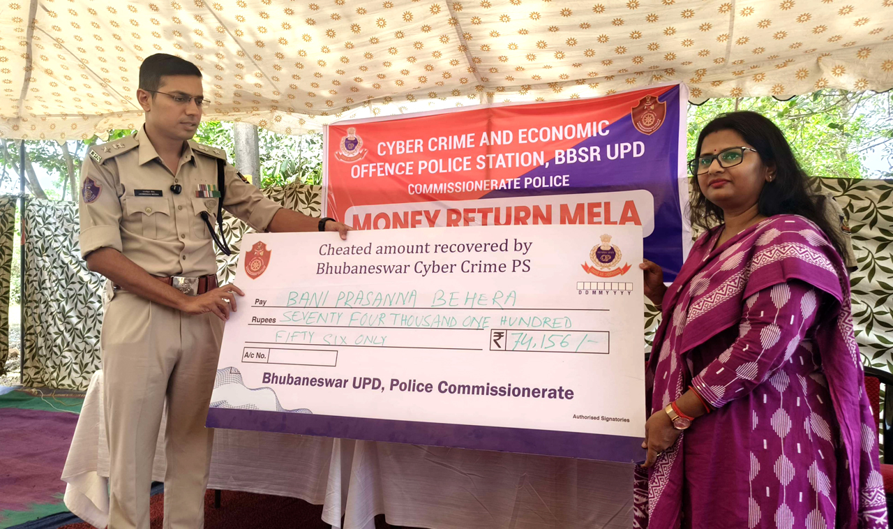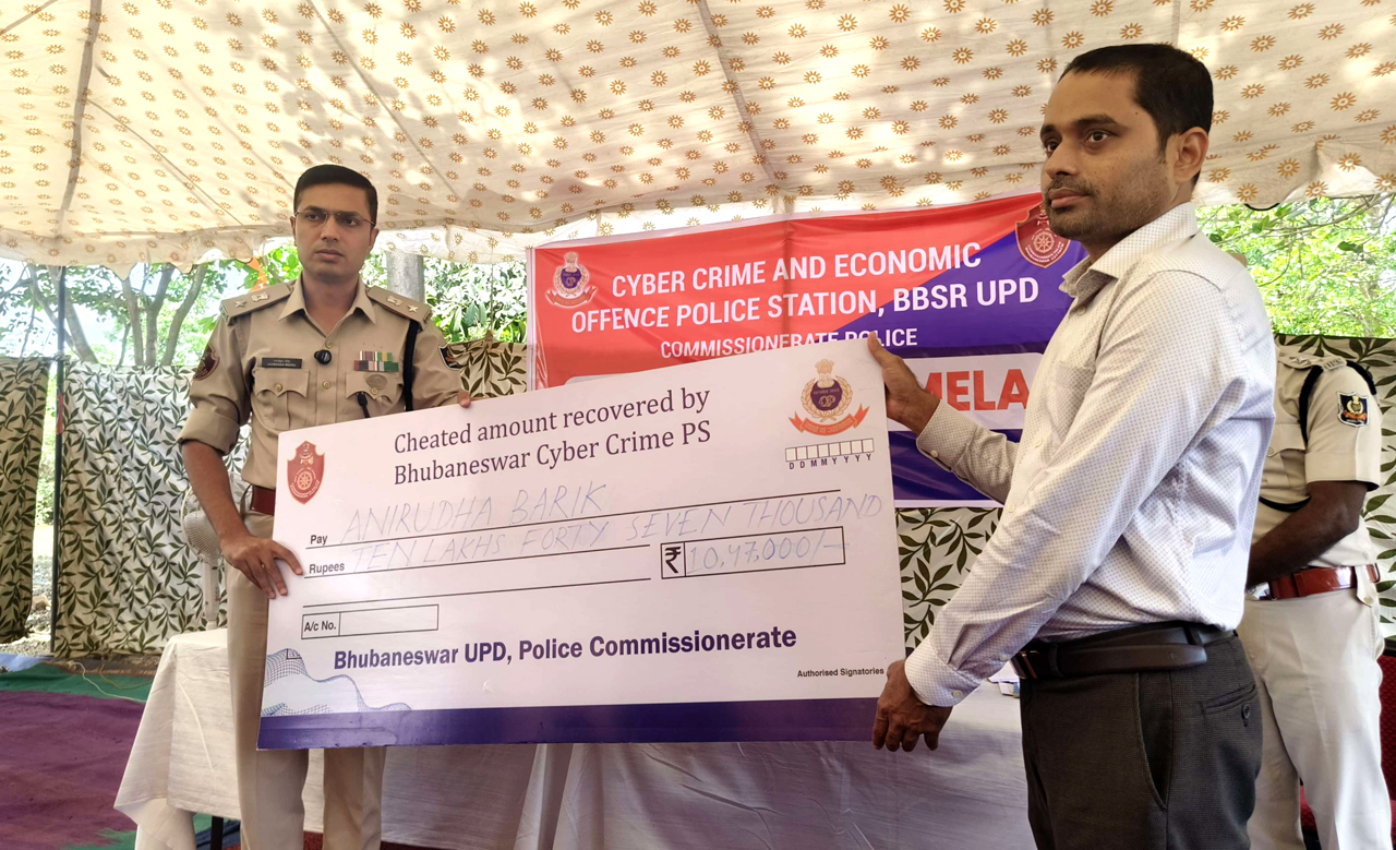 Cyber Fraud Amount Recovery Mela was held at CC & EO PS, Bhubaneswar, on 09.04.2025. An amount of approximately ₹ 2 crores was recovered from various fraud accounts over the past three months and returned to the rightful owners. To report fraudulent transactions, dial 1930 immediately or contact CC & EO PS, Bhubaneswar UPD via WhatsApp at 7440006709.