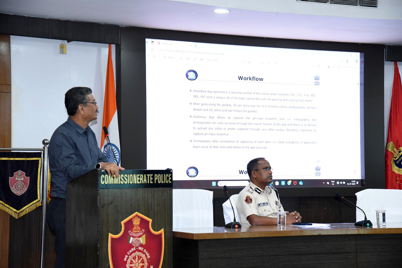 On 01.07.2025, a one-day capacity-building workshop on the E-Sakshya app was organized for investigating officers of Commissionerate Police at CP Headquarters with support from DCRB, Odisha. The app will help police officers collect and secure evidence at crime scenes in real time and maintain transparency in the criminal justice system.