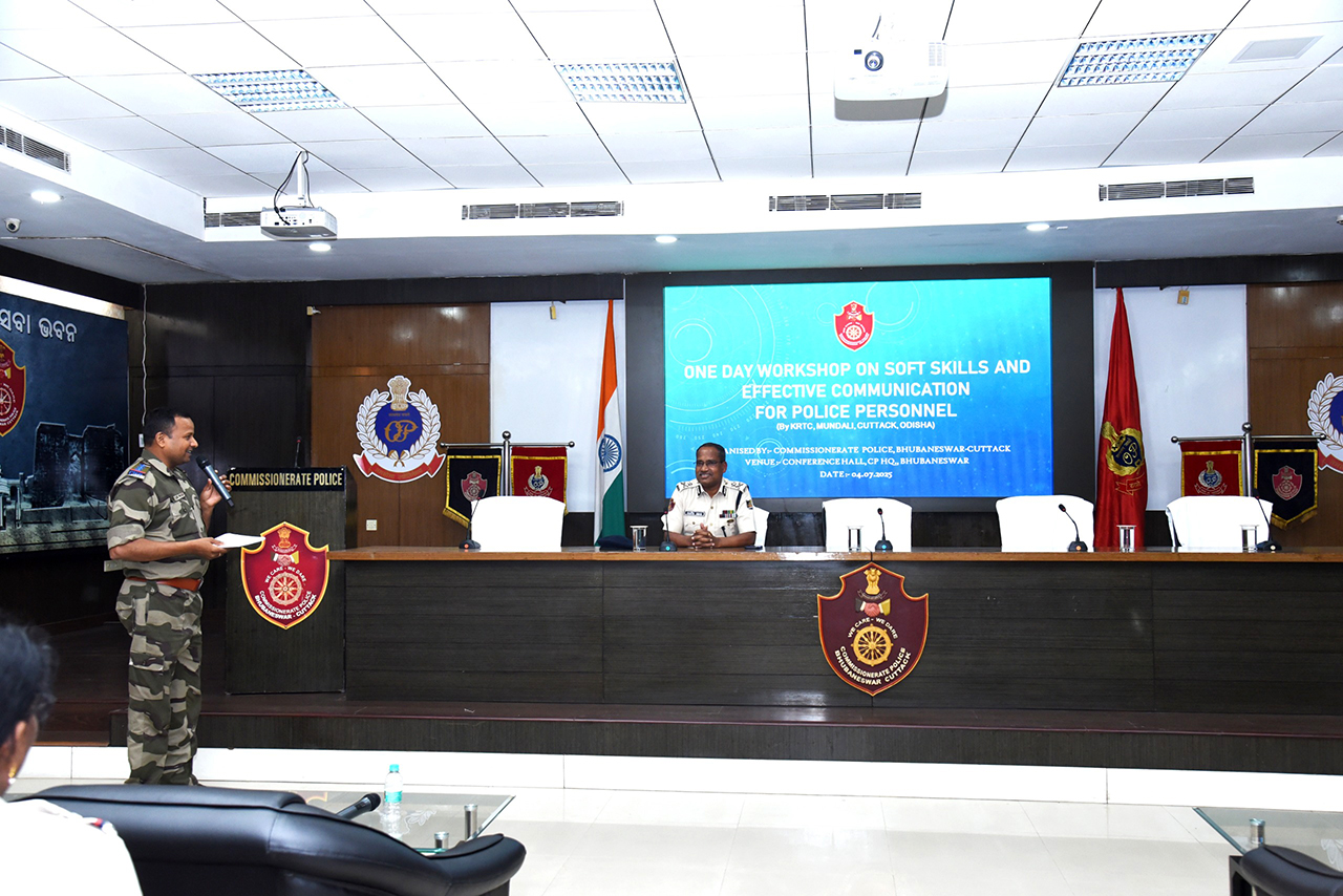 On 04.07.2025, on the last day of capacity building workshop on Soft Skill development, a workshop was organized for Police officers of Commissionerate Police at Police Seva Bhawan with support from CISF, Mundali. The interactive session will help the police officers to communicate effectively & redress the grievances of the public and resolve conflicts. The valedictory workshop was graced by Addl. CP Sri Narasingha Bhola, IPS, he enlightened some good points to the officers on skill development.