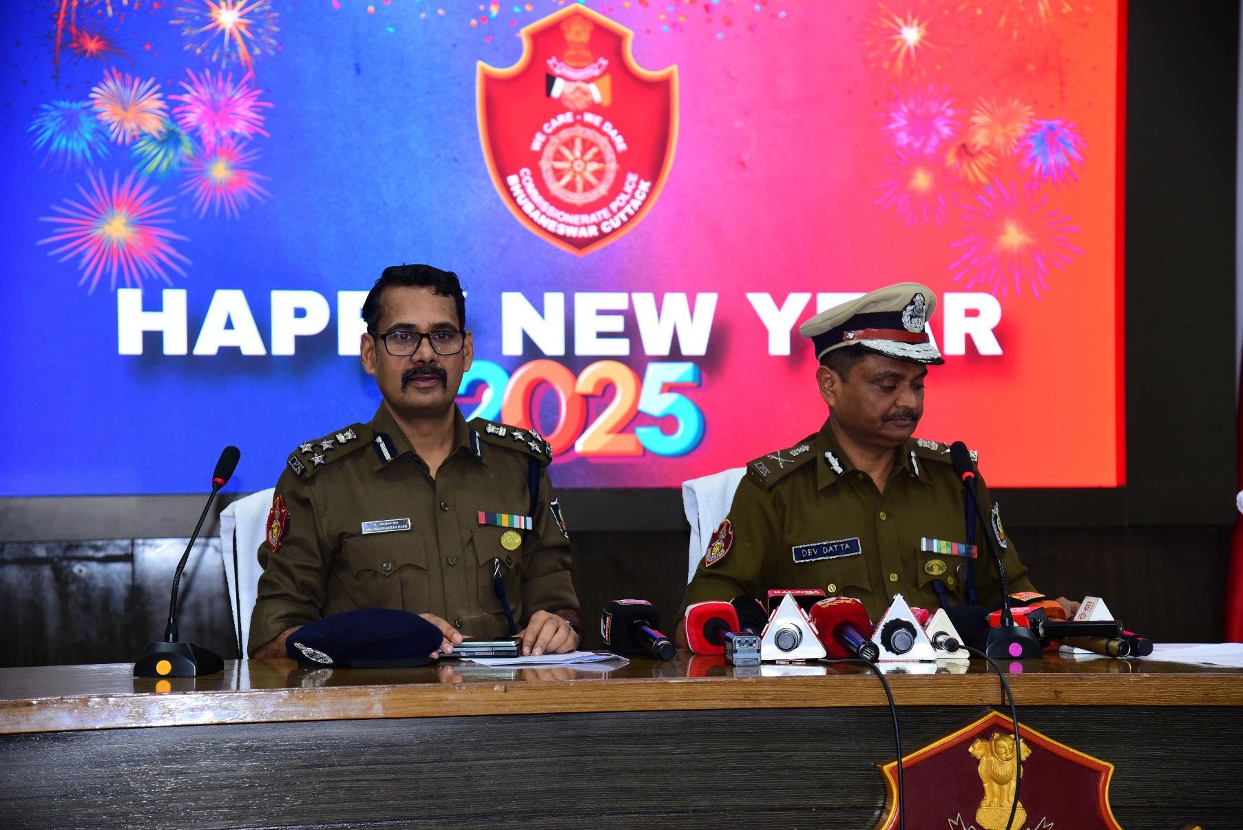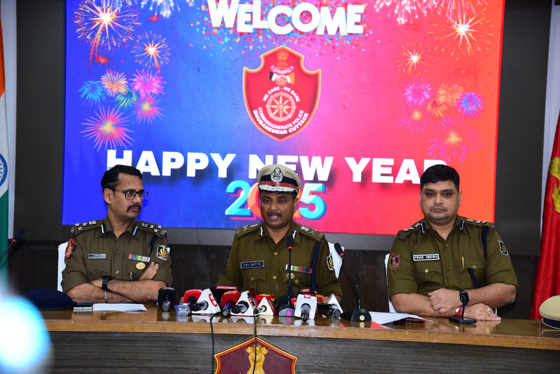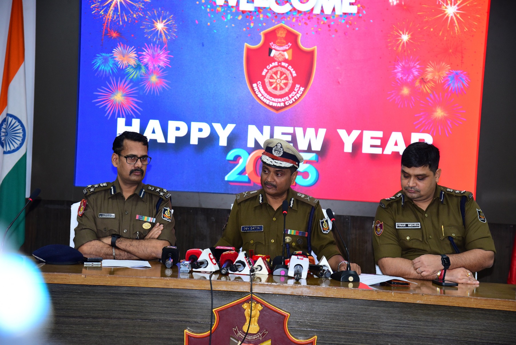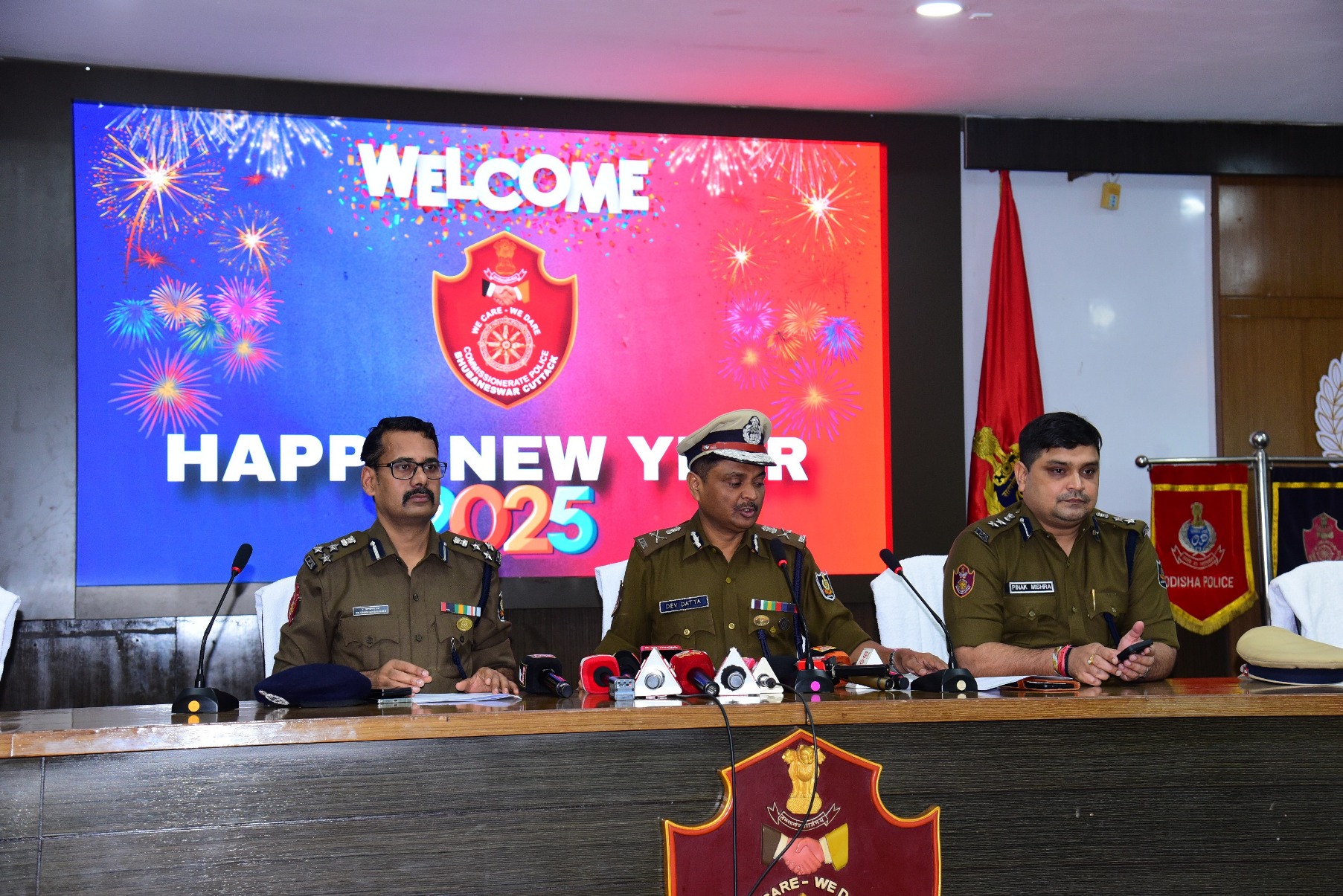 On the occasion of New Year, 2025, Dr. Suresh Dev Datta Singh, IPS, Commissioner of Police, Dr. Umashankar Dash, IPS, Addl. Commissioner of Police, Bhubaneswar-Cuttack and Sri Pinak Mishra, IPS, DCP, Bhubaneswar wish the officers and men of Commissionerate Police Bhubaneswar-Cuttack their good health, and prosperity. They appreciated their significant contribution to Policing in 2024. (01.01.2025)