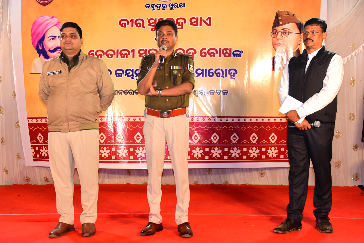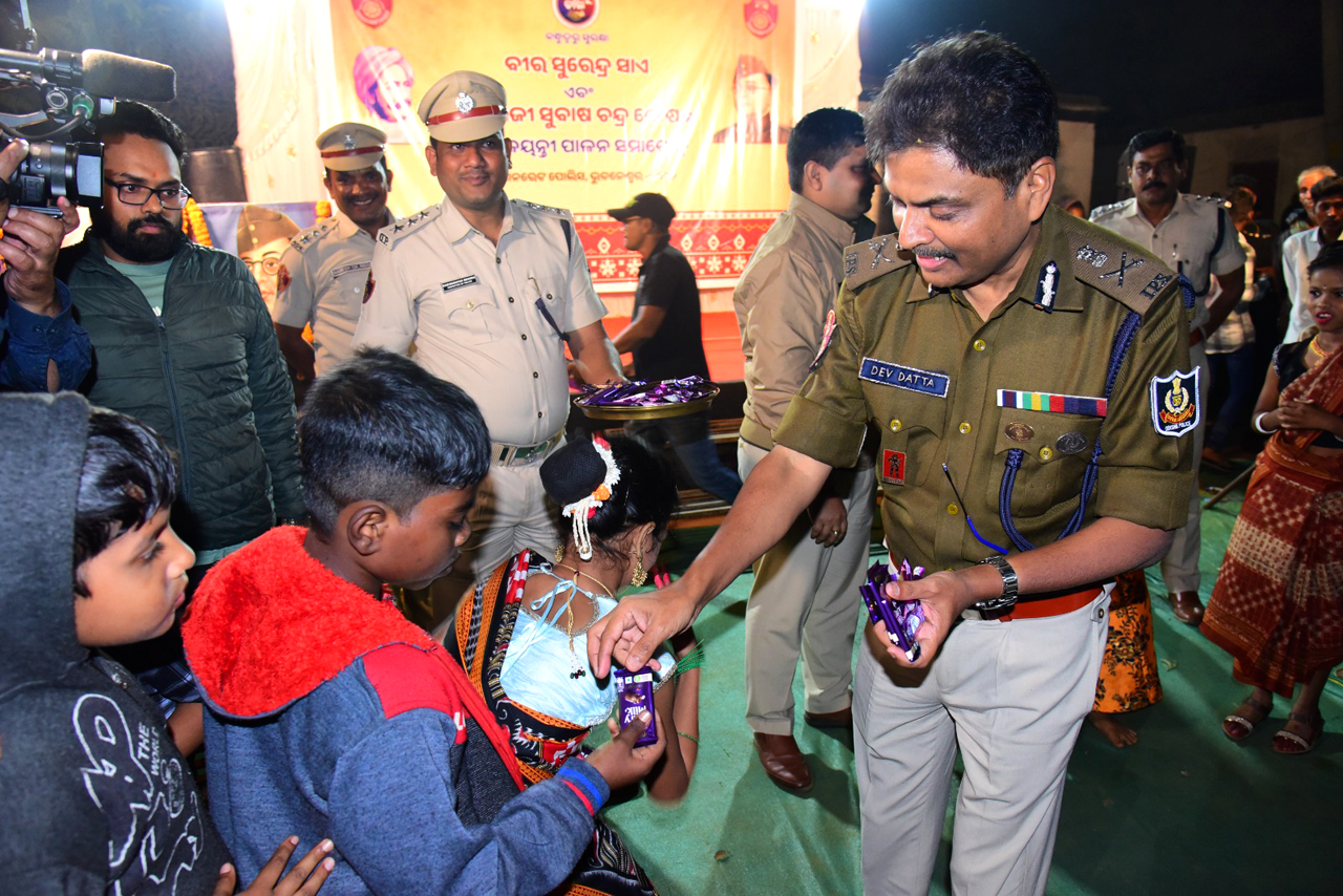 The Commissionerate Police, Bhubaneswar-Cuttack, celebrated the birth anniversaries of eminent freedom fighters Veer Surendra Sai and Netaji Subhas Chandra Bose on 23.01.2025. The events were held at Nilachakra Nagar, Saliasahi, under Maitrivihar PS, and Haladipadia Basti under Laxmisagar PS. Dr. S. Devdatta Singh, IPS, Commissioner of Police, and Shri Pinak Mishra, IPS, DCP Bhubaneswar, graced the occasion.