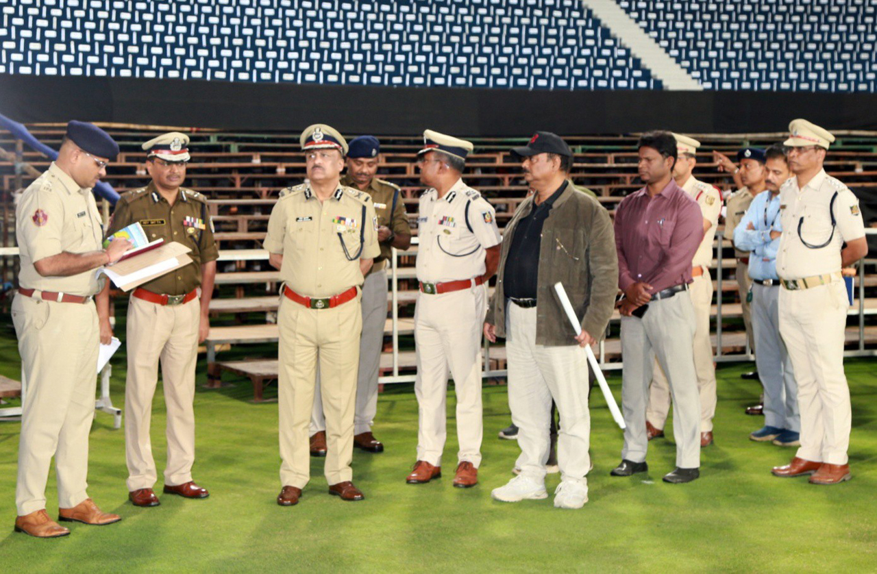 The first T20 international cricket match between India and South Africa is going to be held at Barabati Stadium, Cuttack. In this context, the Director General of Police, Odisha, Sri Yogesh Bahadur Khurania along with other senior officers reviewed the entire security system in the premises of the Stadium on 06.12.2025.